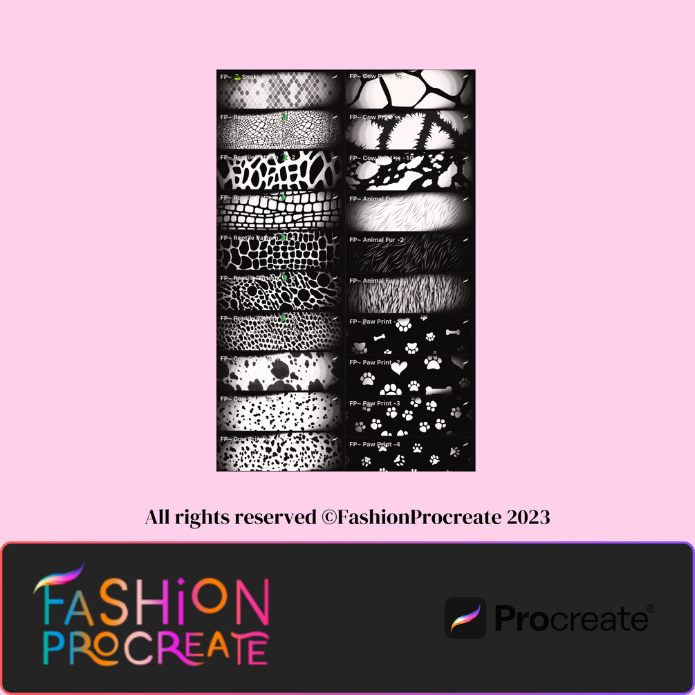 Bring the beauty of the wild to your digital art with this 52 Seamless Animal Print Procreate Brushset! This set includes a variety of animal skin and pattern brushes perfect for fashion design, digital illustration, and textile art. Whether you need leopard, zebra, cow, or reptile patterns, this collection will add a unique, nature-inspired touch to your work.