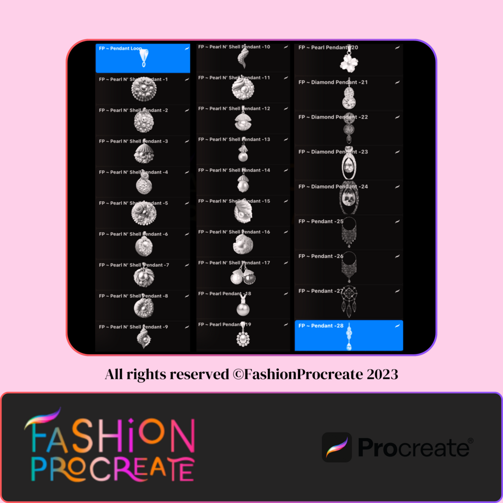 28 Procreate Pearl Diamond and Shell Pendant Jewelry Brush Set