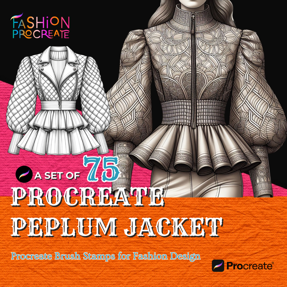75 Procreate Peplum Jacket | Procreate Jackets Brush set| Procreate Stamp Set| Fashion Illustration Tools| Digital Brushes for Designers